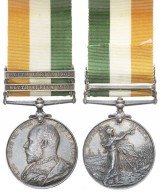 SINGLES: India General Service Medal 1908-35, (GVR Kaisar-I-Hind), - Clasp - Waziristan 1921-24. 4077 Sep. Keshao Tambe, 1-4 Bo. Grs.; India General Service Medal 1936-39, ...