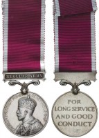 ARMY LONG SERVICE AND GOOD CONDUCT MEDAL, (GVR) 1930-36 - clasp - Regular Army. 7574485 S.Sjt F.Herbert R.A.O.C. with correction to second numeral of service ...