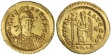 LEO I, (A.D. 457-474), gold solidus, Constantinople mint, 9th Officina, issued 462-466, (4.38 g), obv. Leo three-quarter facing bust, wearing cuirass, paludamentum and crown, holding ...