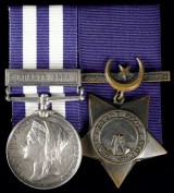 PAIR: Egypt Medal 1882-89, - clasp - Suakin 1885; Khedive's Star 1884-86. 1225 Cr. MakerSgt G.McCabe. N.S.W.Arty on first medal, second medal unnamed as issued. ...