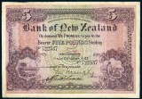 BANK OF NEW ZEALAND, five pounds, Wellington 1st October 1922, No 722537 (P.S228). A full note, good fine.