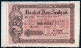 BANK OF NEW ZEALAND, sixth issue, specimen one pound, Wellington 19- No 050001/150000 (P.S212) perforated cancelled. Good extremely fine.