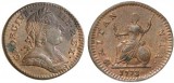 GEORGE III, first issue, halfpenny, 1772 (S.3774), ball below spear blade; third issue, halfpenny, 1799, nine relief gunports (S.3778). The first in a slab by ...