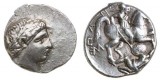 PAEONIA, Kingdom of, Patraos, (c.340-315 B.C.), silver tetradrachm, (12.72 g), obv. head of Apollo to right, with laureate, rev. horseman spearing fallen enemy, who holds ...