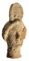 GREEK, (c.450 B.C.), terracotta female facing head protome, pierced as usual at the top, height 90mm. Small chip to one side of the head otherwise ...
