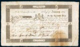 BANK OF VAN DIEMEN'S LAND, cheque, 11th October 1826 for five pounds signed by James Kelly. Top left corner torn, otherwise nearly very fine.