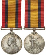 QUEEN'S SOUTH AFRICA MEDAL 1899, (type 3 reverse), with South African & Active Service Association badge affixed to ribbon. Mr. D.Wegner. Natal Govt: Rlys: Impressed. ...