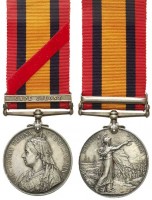 PAIR: Queen's South Africa Medal 1899, (type 3 reverse), - five clasps - Cape Colony, Orange Free State, Transvaal, South Africa 1901, South Africa 1902; ...