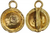 ROMAN, 2nd-3rd century A.D., gold pendant, shield shaped with embossed circular motif to centre, surrounded by indented patterns with a suspension loop at top, length ...