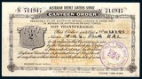 AUSTRALIAN DEFENCE CANTEENS SERVICE, Canteen Order, two shillings, New South Wales issue, N711947/714216/867407, handstamped for Money Order Counter at G.P.O. Sydney, 22Nov1943/27Nov1943/29Jan1944', named in ink ...