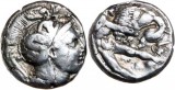 ITALY, Calabria, Tarentum (Taras), (3rd century B.C., 302-281 Ravel), silver drachm, (3.06 g), obv. head of Athena wearing crested helmet ornamented with Skylla to right, ...