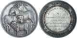 VILLIERS & HEYTESBURY AGRICULTURAL ASSOCIATION, in bronze (38mm), by W.J.Taylor, obverse inscribed, 'Warrnambool', reverse inscribed, '2nd Prize/Awarded To/Frank Tillen/For Best/Single Buggy Horse/Annual Show/October 1876'. Dark ...