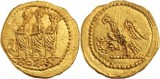 THRACE, Kingdom of, Koson, (c.42 B.C.), gold stater, (8.27 g), Northern Greece mint, obv. three togate figures advancing to left, the first and third carrying ...
