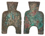 CHINA, Chou Dynasty, Large "Ch'i or Qi" series (from the Duchy of Ch'i during the Chou Dynasty), pointed type, (c.400-200 B.C.), value 10, as characters ...