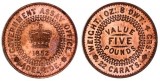 ADELAIDE ASSAY OFFICE, five pounds, 1852, in copper struck from copy dies for David Gee, milled edge. Full mint red, uncirculated.