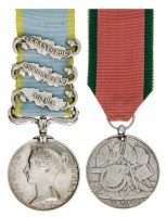 CRIMEA MEDAL 1854-56, - three clasps - Alma, Inkerman, Sebastopol; Turkish Crimea Medal 1855-56, (La Crimea - Sardinian issue). 2937. Pte J.Taylor. 77/Foot. on first ...