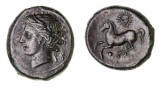 SICILY, Panormos (as Ziz), (c.336-330 B.C.), AE 23, (8.60 g), obv. head of Persephone left, wreathed with corn, Punic "ziz" behind head, rev. horse galloping ...