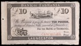 BANK OF TASMANIA, specimen ten pounds, Launceston, 185-, imprint 'Rowe, Kentish and Co London' (MVR). Spike hole left margin otherwise extremely fine.